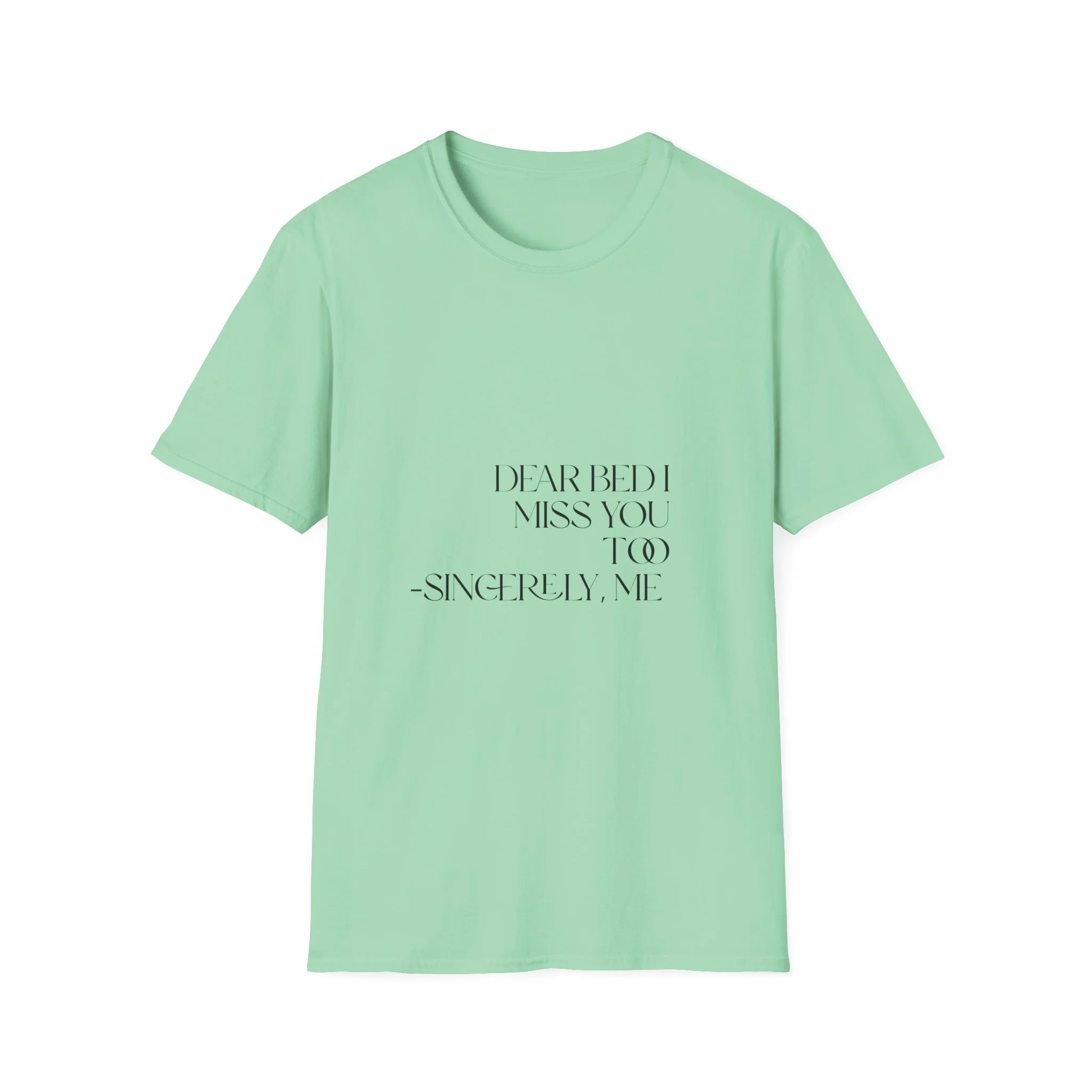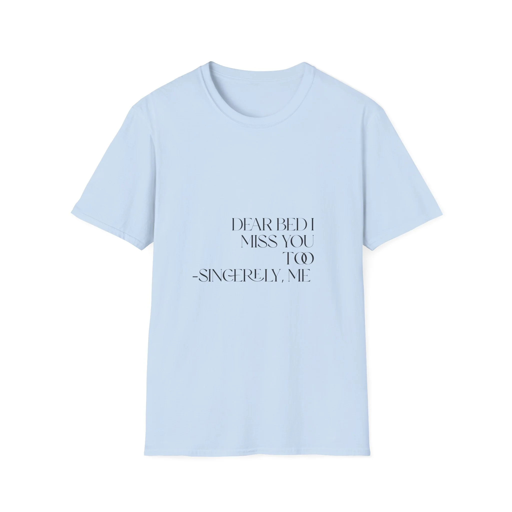 T-Shirt — "Dear Bed I Miss You (Too) — Sincerely, Me" Minimalist Text Tee| Spoonie Humor Shirt